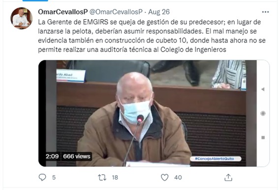Foto del concejal Santiago Omar Cevallos Patiño tomada de la web Ojo al Concejo y de la cuenta de Twitter del concejal.