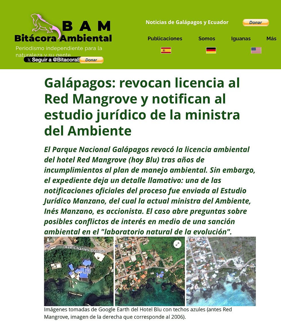 Este nuevo capítulo, del ahora hotel Blu, complejiza aún más el caso que ya había generado cuestionamientos por las conexiones entre el expediente sancionador y el entorno jurídico de la ministra del Ambiente . Porque ahora la pregunta no es solo sobre vínculos, sino sobre efectividad del control estatal.